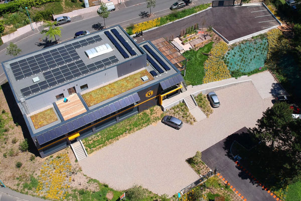 Le bâtiment est équipé d’un procédé qui permet de stocker l’énergie thermique solaire dans la roche à 150 m de profondeur via une batterie de 4 sondes. Il est producteur d’énergie électrique grâce à une centrale photovoltaïque dont une partie est en autoconsommation.
